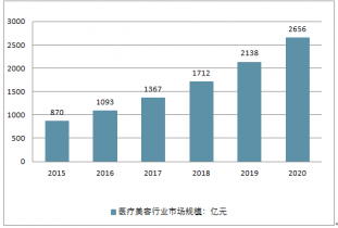 2017年中國(guó)醫(yī)療美容行業(yè)市場(chǎng)規(guī)模達(dá)1367億元,預(yù)計(jì)2020年將突破2500億元。