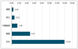 2013-2019年間,日本是全球最大的活鰻魚進口國,進口總額達(dá)13.93億美元,排在第二位的是韓國,進口總額為4.81億美元,香港、荷蘭、德國進口總額依次為1.48億美元、0.72億美元、0.39億美元。