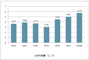2016年中國(guó)健康體檢人次4.52億次,預(yù)計(jì)2018年達(dá)到5.75億人次。