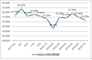 2017.8-2018.7月中國(guó)制造業(yè)采購(gòu)經(jīng)理指數(shù)走勢(shì)分析