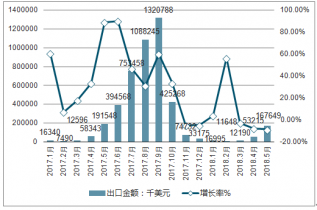 2017-2018年5月各月中國圣誕用品出口金額及增長走勢