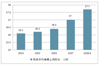 2018年6月,中國網(wǎng)民的人均周上網(wǎng)時長為27.7小時,相比2017年末提高0.7個小時。