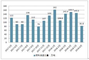 2018年6月中國5-7號燃料油進口量為82萬噸,同比下降9.1%。2018年1-6月月中國5-7號燃料油進口量為790萬噸,與去年同期相比增漲14.7%。