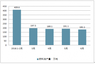 2018.1-6月中國燃料油產(chǎn)量及同比增長走勢
