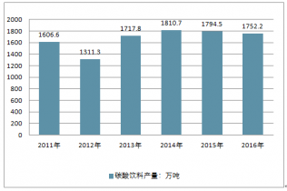 2011-2016年我國碳酸飲料產(chǎn)量走勢