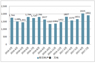 2016-2017年中國軟飲料單月產(chǎn)量走勢