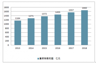 2013-2018年中國童裝銷售規(guī)模走勢(shì)