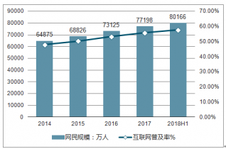 2014-2018年中國網(wǎng)民規(guī)模及互聯(lián)網(wǎng)普及率走勢