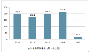 中國汽車零部件凈出口額(十億元)