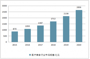 2016年全球醫(yī)療美容市場(chǎng)規(guī)模為100億美元,預(yù)計(jì)將以7.27%的年復(fù)合增長(zhǎng)率增長(zhǎng),預(yù)計(jì)2020年達(dá)到133.4億美元。2017年中國(guó)醫(yī)療美容行業(yè)市場(chǎng)規(guī)模達(dá)1367億元,預(yù)計(jì)2020年將突破2500億元。