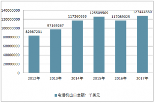 2012-2017年中國電話機(jī)出口數(shù)量走勢