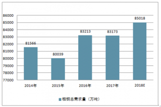 2014-2019年中國粗鋼總需求量