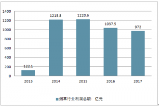 2013-2017年中國煙草行業(yè)利潤總額走勢(shì)