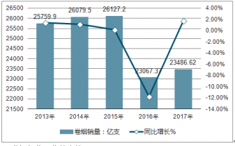 2013-2017年中國卷煙銷量及同比增長走勢(shì)