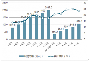 2018年1-6月飲料制造業(yè)利潤及增長走勢