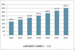 2016-2022年我國骨科器械行業(yè)銷售收入預(yù)測