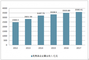 2012-2017年中國(guó)乳制品企業(yè)營(yíng)業(yè)收入走勢(shì)