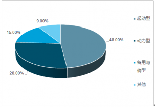 在鉛酸蓄電池產品結構中,啟動型鉛酸蓄電池占比最大,達到48%,其次是動力型鉛酸蓄電池,占比為28%,備用與儲能型鉛酸蓄電池占比為15%。