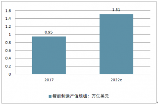 2017-2022年全球智能制造產(chǎn)值規(guī)模走勢(shì)
