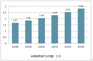 預(yù)計(jì)未來(lái)幾年我國(guó)智能制造行業(yè)將保持11%左右的年均復(fù)合增速,到2023年行業(yè)市場(chǎng)規(guī)模將達(dá)到2.81萬(wàn)億元,行業(yè)增長(zhǎng)空間巨大。
