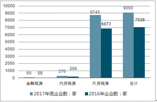2016-2017年中國融資租賃企業(yè)數(shù)情況