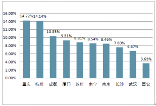 2017年,樓市成交量前三名的城市分別是重慶、成都和武漢,成交量分別為 2647、2035 和 1826 萬平方米。主要原因可概括為人口數(shù)量多,購房需求旺盛,人均可支配收入尚可,房地產(chǎn)市場仍處在增長期。