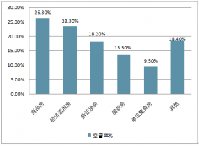商品房和經(jīng)濟(jì)適用房的空置率較高,分別為26%、23%