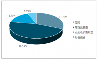 購房有較大需求,居住改善型占比較大。在問及“您近期是否有購房需求”時,超過六成以上受訪者有購房潛在意向,受訪者選擇“有”和“看情況”的分別占30%和37% ,選擇“沒有”的占33%。隨著經(jīng)濟的發(fā)展,老百姓生活水平的提高,城鎮(zhèn)化的不斷推進,年輕一代就業(yè)、結(jié)婚置房以及全面放開二孩后家庭人口增多等因素,對住房均有較大需求,在調(diào)查有購房潛在意向的市民中,“剛需”和“居住改善型”二者所占比例超過七成,分別占31.3%和46.3%,選擇“炒房投資”的僅占6.0%。