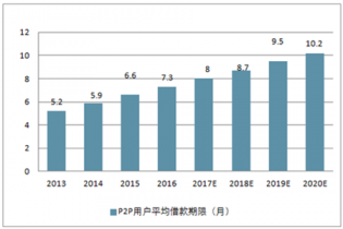 2013-2020年中國(guó)P2P用戶平均借款期限(月)