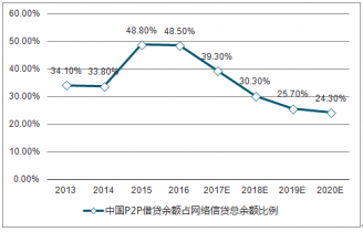 2013-2020年中國P2P借貸余額占網(wǎng)絡(luò)信貸總余額比例情況