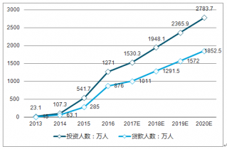 2013-2020年中國P2P投融資人數(shù)