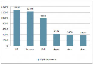 在2019年第.一季全球傳統(tǒng)PC出貨量排行榜中,惠普2019年一季度出貨量達(dá)1367.6萬臺,實(shí)現(xiàn)了4.3%的同比增長,聯(lián)想排名第二,出貨量為1230.5萬臺,與2017年持平;排名第三的是戴爾,2019年第.一季度出貨量為1019萬臺,同比增長6.4%。
