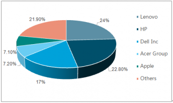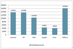 2018第三季度全球個(gè)人電腦銷(xiāo)量市場(chǎng)占比