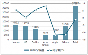 2018第三季度全球個(gè)人電腦銷(xiāo)量及同比增長(zhǎng)