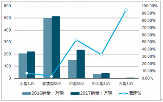 2017年中國(guó)SUV細(xì)分市場(chǎng)銷量及增速