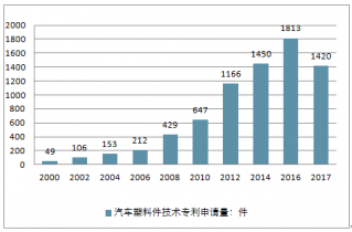 2000-2016年,我國汽車塑料件技術(shù)專利申請量呈逐年增長趨勢。2017年,我國汽車塑料件技術(shù)專利申請數(shù)量達到1420件。