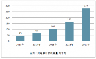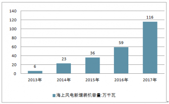 2013-2017年中國(guó)海上風(fēng)電新增裝機(jī)容量情況