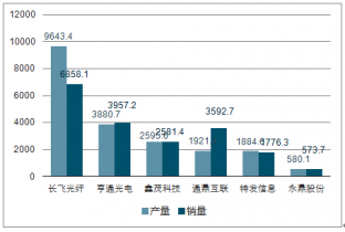 2017年光纖光纜行業(yè)主要上市企業(yè)光纖光纜產(chǎn)銷(xiāo)量情況