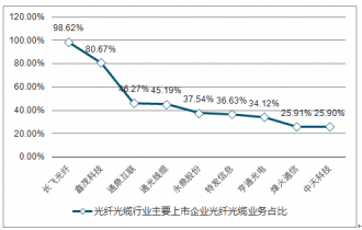2017年光纖光纜行業(yè)主要上市企業(yè)光纖光纜業(yè)務(wù)占比情況