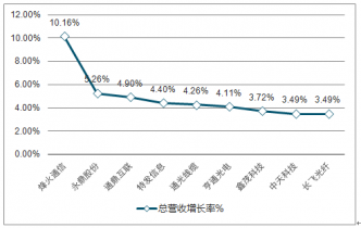 2017年光纖光纜行業(yè)主要上市企業(yè)總營收增長率