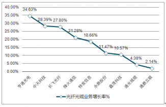 2017年光纖光纜行業(yè)主要上市企業(yè)光纖光纜業(yè)務(wù)增長率%