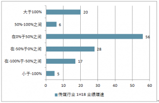傳媒行業(yè) 1H18 業(yè)績增速分布