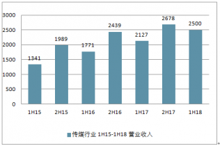 傳媒行業(yè) 1H15-1H18 營業(yè)收入及其增速