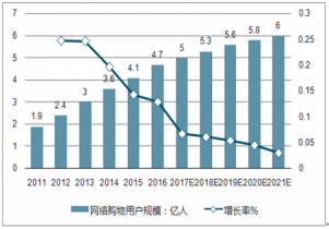 圖表:2010-2018年中國億動購物用戶規(guī)模