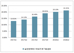 2018年第二季度,全國固定寬帶用戶網(wǎng)絡(luò)下載的忙閑時加權(quán)平均下載速率為21.31Mbit/s,同比2017年第二季度提升達到51.0%;全國移動寬帶用戶通過4G網(wǎng)絡(luò)訪問互聯(lián)網(wǎng)時的平均下載速率為20.22Mbit/s,同比2017年第二季度提升50.2%。2018年二季度,我國固定寬帶和4G網(wǎng)絡(luò)用戶下載速率雙雙超越20Mbit/s。