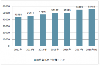 2012-2018年上半年中國(guó)網(wǎng)絡(luò)音樂(lè)用戶(hù)規(guī)模走勢(shì)