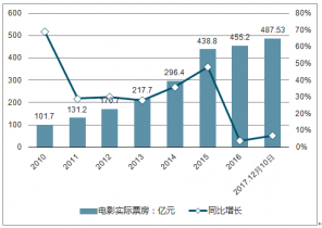 2010~2017.12.10中國電影實際票房規(guī)模及增速