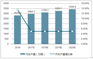 2016-2020年中國汽車產(chǎn)量及增長率走勢