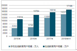 2017年末中國手機在線教育用戶規(guī)模為11890萬人,2018上半年中國手機在線教育用戶規(guī)模為14221萬人。