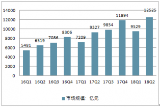 2018 年二季度中國網絡零售 B2C 市場總體保持穩(wěn)定。二季度總交易規(guī)模為1.25 萬億元人民幣,同比增長 34%,較去年同期增速略有下滑,與去年同期基數較高有關;環(huán)比因是電商促銷旺季而有所上升。國內主要平臺 B2C 線上零售市場集中度仍然較高,
